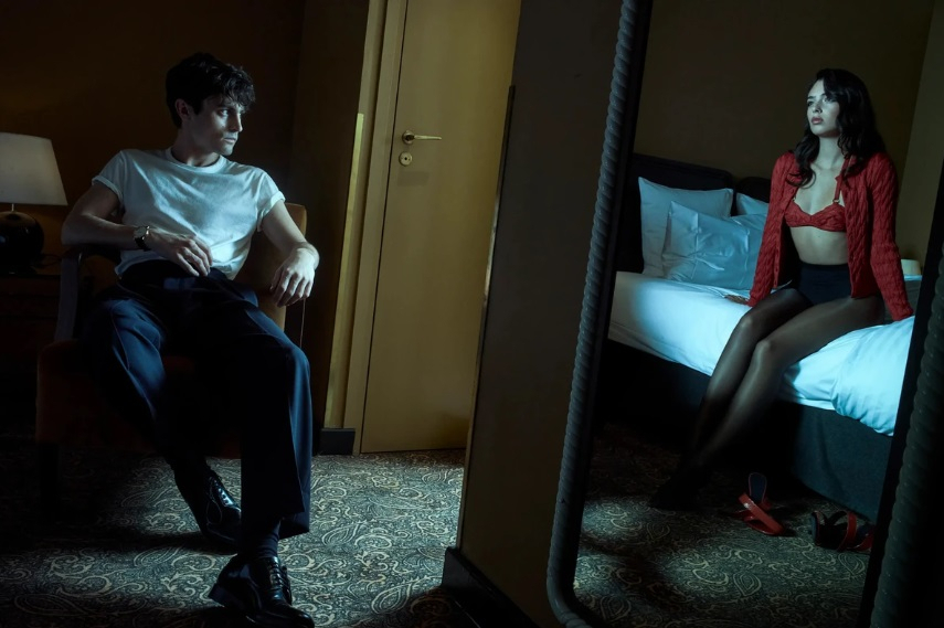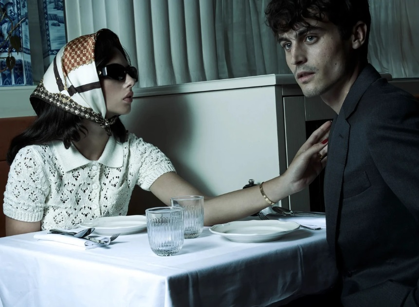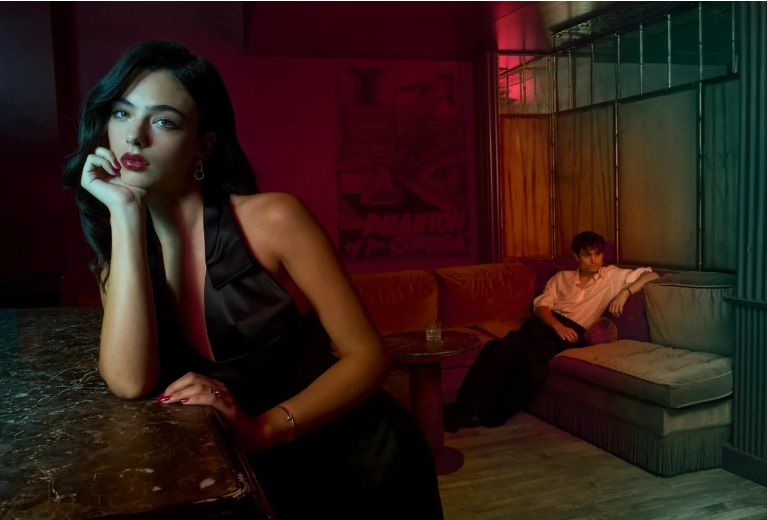 The young model and actress posed alongside French actor Julien de Saint Jean, with whom she recently starred in the film “The Phantom of the Opera.” The photoshoot was filled with a romantic and slightly intriguing atmosphere: shots with a convertible and cozy hotel interiors create the feeling of a cinematic scene.