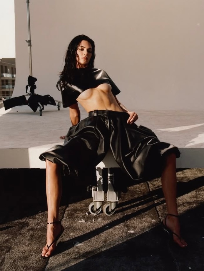 The photoshoot took place in Los Angeles and was captured by her close friend Renell Medrano, making her debut on the cover of Vogue France, with styling by Carlos Nazario. Together, they presented Kendall in her natural environment, highlighting the intimacy and lightness of her looks.