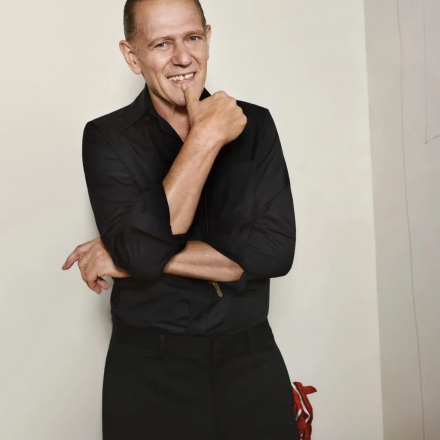 For the shot, Paul Simonon wears a black suit, white shirt, and lace-up shoes, creating a look that is both elegant and effortlessly relaxed. By his side are his faithful companions, English toy terriers Snoop and Pinat, bringing an atmosphere of homey comfort and real life to the shoot. Fashion here seems to live not only on the runway but also among friends, laughter, and everyday moments.