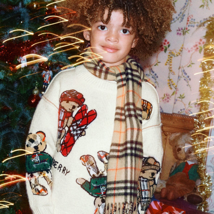 Además de la ropa, Burberry presenta regalos y accesorios navideños: mochilas, bufandas de cachemir, ropa infantil, mientras que las fragancias Burberry Goddess y Burberry Hero completan el set perfecto para las fiestas.