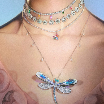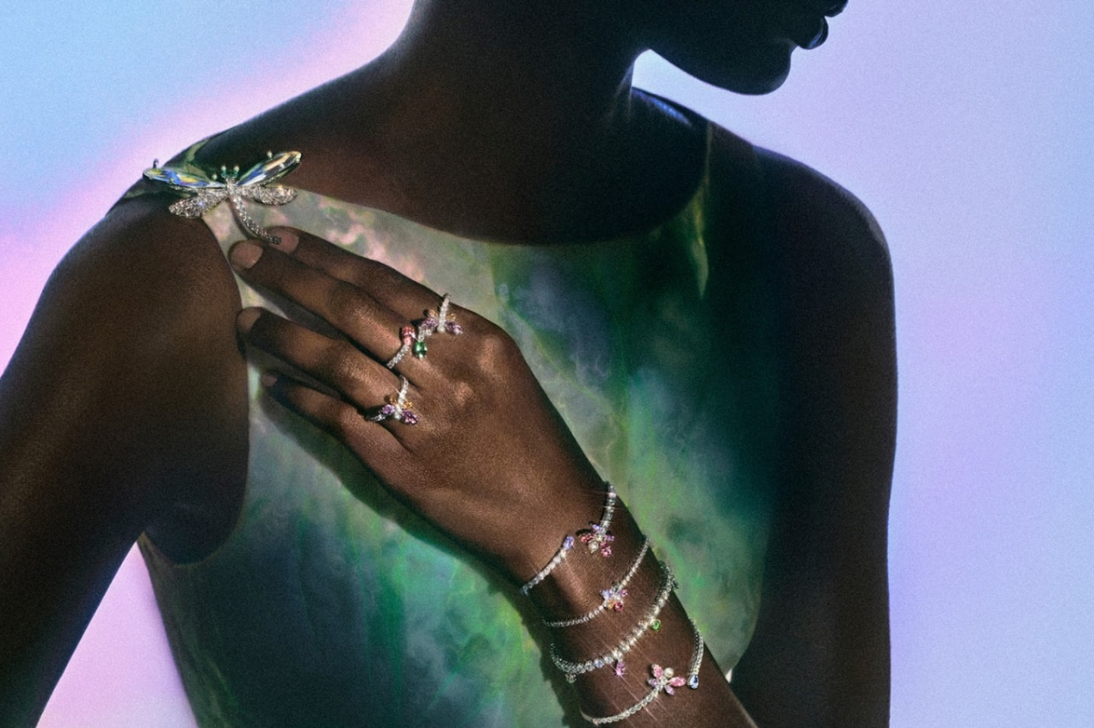 Flora e fauna non sono semplici decorazioni, ma simboli di autoespressione. Fiori e libellule si presentano in diverse interpretazioni, dal realistico all’astratto, creando un’atmosfera di magia poetica. Spille leggere, eleganti fermagli e miniature animano questo giardino: viene quasi voglia di perdersi tra queste meraviglie di cristallo.