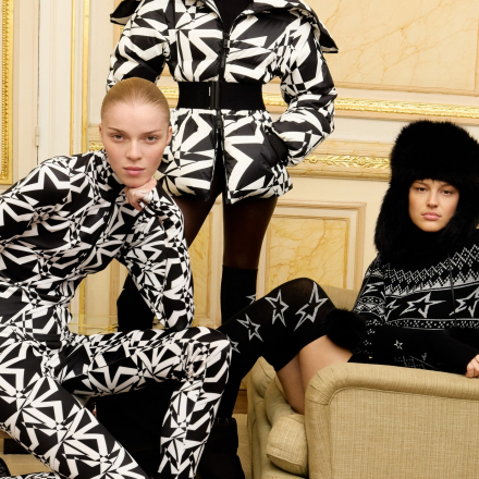 Particolare attenzione merita l’equilibrio della collezione: il design tecnico si fonde con un approccio fashion. Ci sono piumini imbottiti, completi eleganti, maglieria in lana merino e mohair, oltre ad accessori in cui il nero, il bianco e l’argento si combinano armoniosamente con tocchi di bordeaux e blu ghiaccio. Così il lusso alpino incontra l’eleganza urbana — esattamente ciò di cui hanno bisogno le fashioniste moderne.