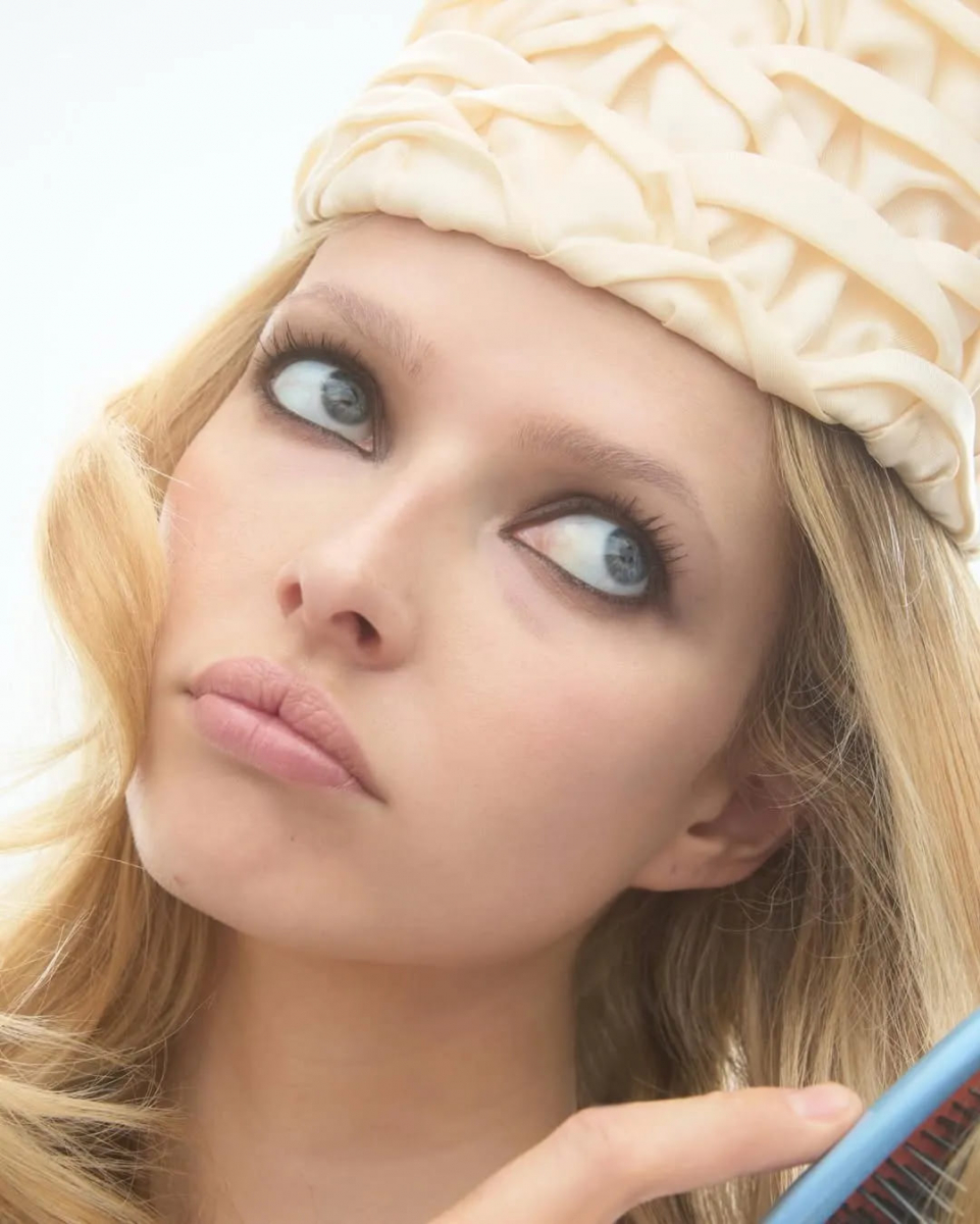 Для зйомки Еппл обрала естетику, що балансує між витонченою простотою та дерзким молодіжним настроєм. На одному зі знімків вона позує у білому бюстгальтері від Cou Cou Intimates та розслаблених шортах Loro Piana — образ, створений для того, щоб підкреслити природність і легкість.